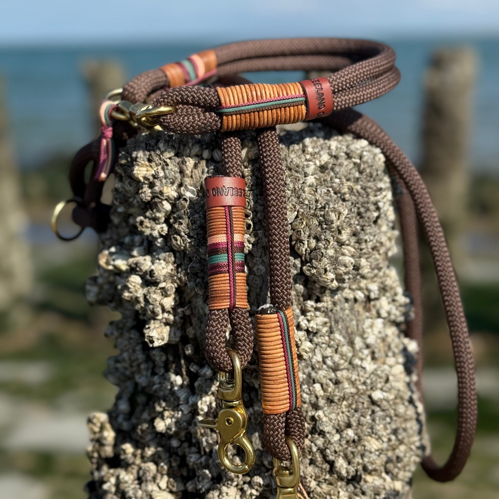 Unsere Retrieverleinen vereinen Halsband und Leine in einem – ideal für Spaziergänge, bei denen es schnell gehen soll. Einfach über den Kopf ziehen, und schon ist dein Hund startklar. Jede Retrieverleine kommt bei uns immer mit einem Karabiner zum verstellen – für sicheren Halt und angenehmes Führen.