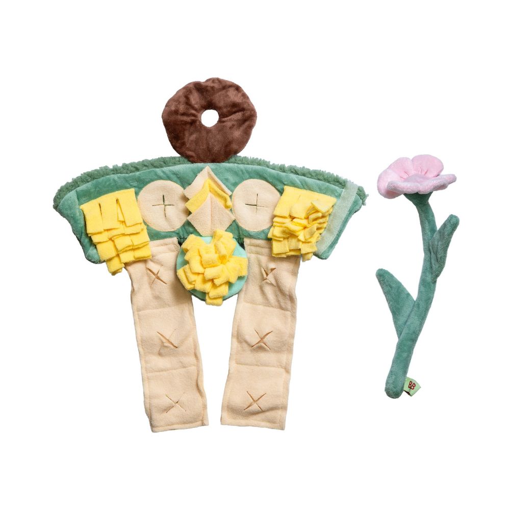 Das Versteck-Wunder: Die Pflanze lässt sich entfalten und verwandelt sich in einen großen Schnüffelteppich mit vielen Taschen, Falten und Geheimverstecken für Leckerlis.