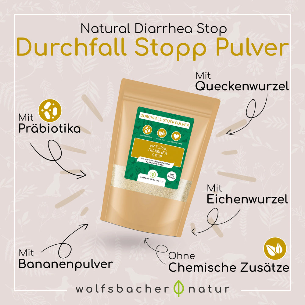 Het Diarree Stop Poeder voor honden en katten biedt snelle en natuurlijke verlichting bij acute diarree. Gemakkelijk te mengen met voer (ideaal voor huisdieren die moeite hebben met tabletten).