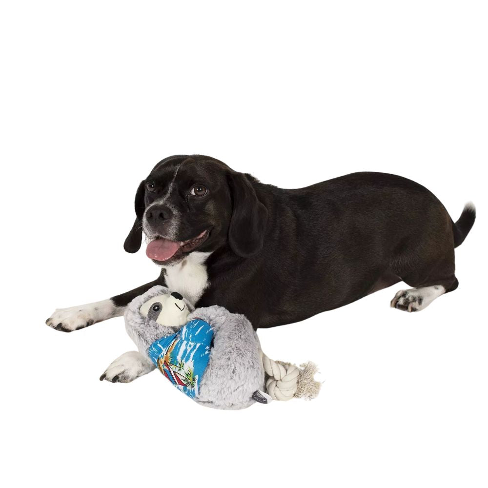 Maak kennis met Hugo, een zonminnende en piepende luiaard die dol is op de zomer. Gekleed in een iconisch Hawaiiaans shirt hangt hij aan een stevig touw waar je hond aan kan trekken en aan kan kauwen. Hij heeft zelfs een luide pieper in zijn buik voor extra speelplezier.